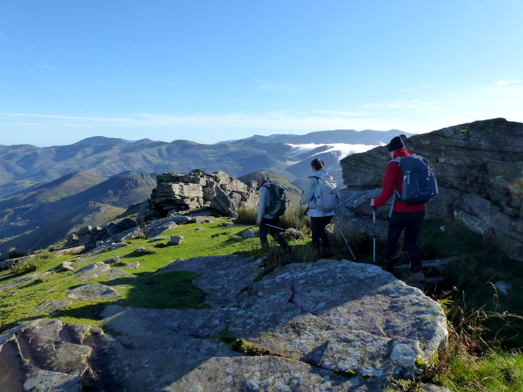 Nous étions huit à faire le tour de la Rhune à partir de la carrière d’Ascain et malgré un départ sous la grisaille, le soleil a fait son apparition au bon moment et la visibilité fût exceptionnelle. Merci à Claude pour ce tour de la Rhune inédit et pour ceux et celles qui veulent des précisions sur les « Pierres réveillés » (les roches sculptées), cliquez sur le lien suivant: