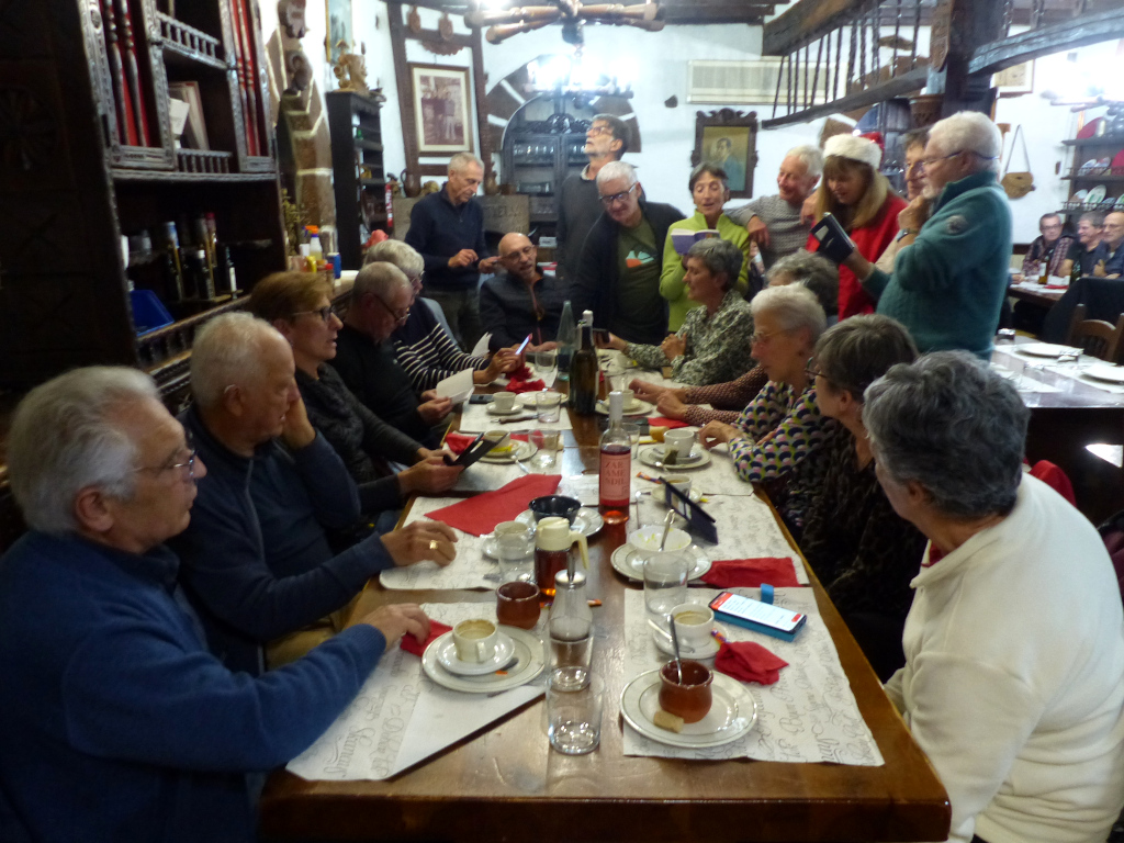 La météo étant mauvaise une fois de plus nous avons été contraint d’annuler la randonnée prévue mais le repas de fin d’année à Etxalar a été maintenu et je pense que nous avons passé un bon moment comme le prouve les images qui suivent et une petite vidéo ici: