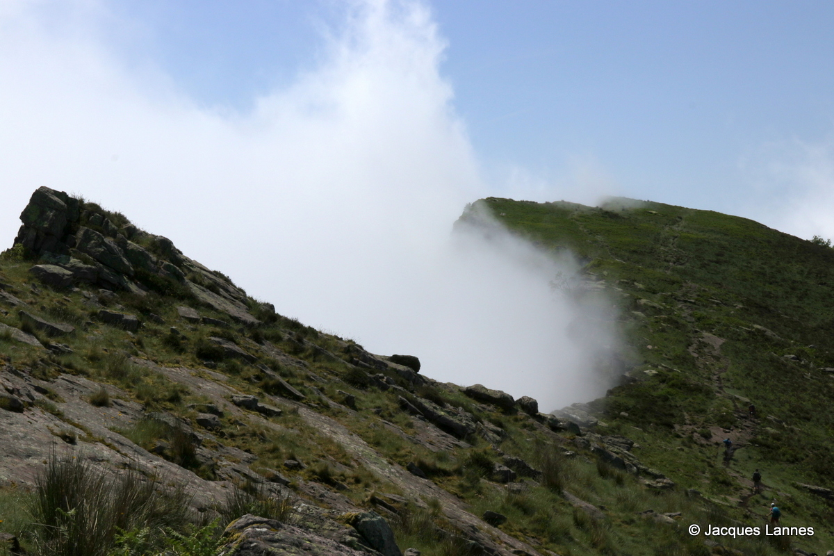 Nous avons commencé la journée dans le brouillard néanmoins les crêtes d’Iparla ont bien voulu se découvrir lorsque nous atteignîmes le sommet et le spectacle fût au rendez-vous ce qui nous consola des efforts qu’exigèrent de nous la cheminée à gravir.