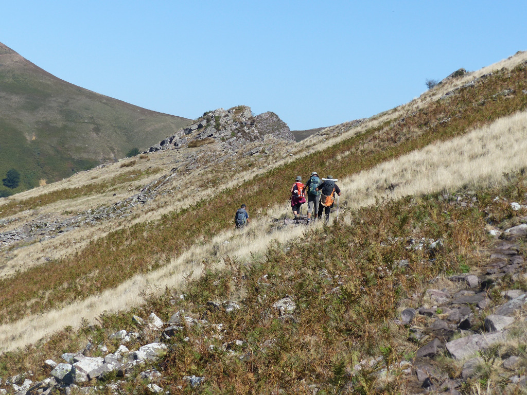 Nous n’étions que 6, Jean Yves nous a donc proposé un plan B la sortie prévue nécessitant un long trajet non rentable avec des voitures incomplètes. La promenade fût longue (20km) et belle avec une météo idéale et puis la pause de midi à Ispéguy était providentielle pour ceux qui avaient oublié leur pique-nique!